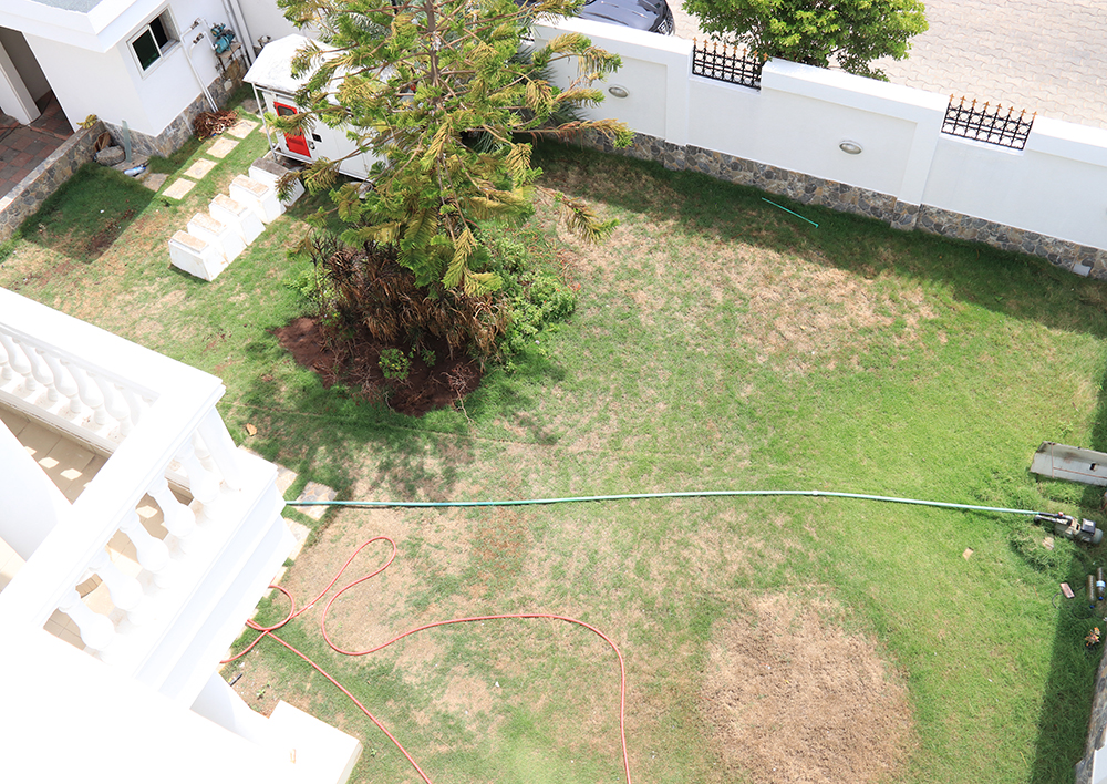 En effet, dès votre arrivée, vous serez séduit par l’ampleur et les équipements de cette villa. Le rez-de-chaussée dispose d’une guérite de sécurité et d’un garage pouvant accueillir jusqu’à cinq véhicules. Il est également équipé d’un groupe électrogène pour assurer une alimentation continue en cas de coupures d’électricité. L’extérieur agrémenté d’un espace vert à l’avant et à l’arrière, offrant un cadre de vie agréable.