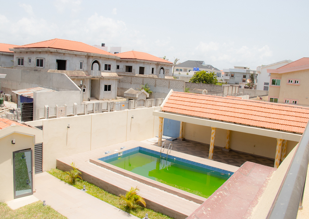 CETTE VILLA DE LUXE AVEC PISCINE ET JARDIN MASSIF EST À LOUER DANS LA CITE CENSAD AGBLANGANDAN (EX CHAMP DE TIR)
