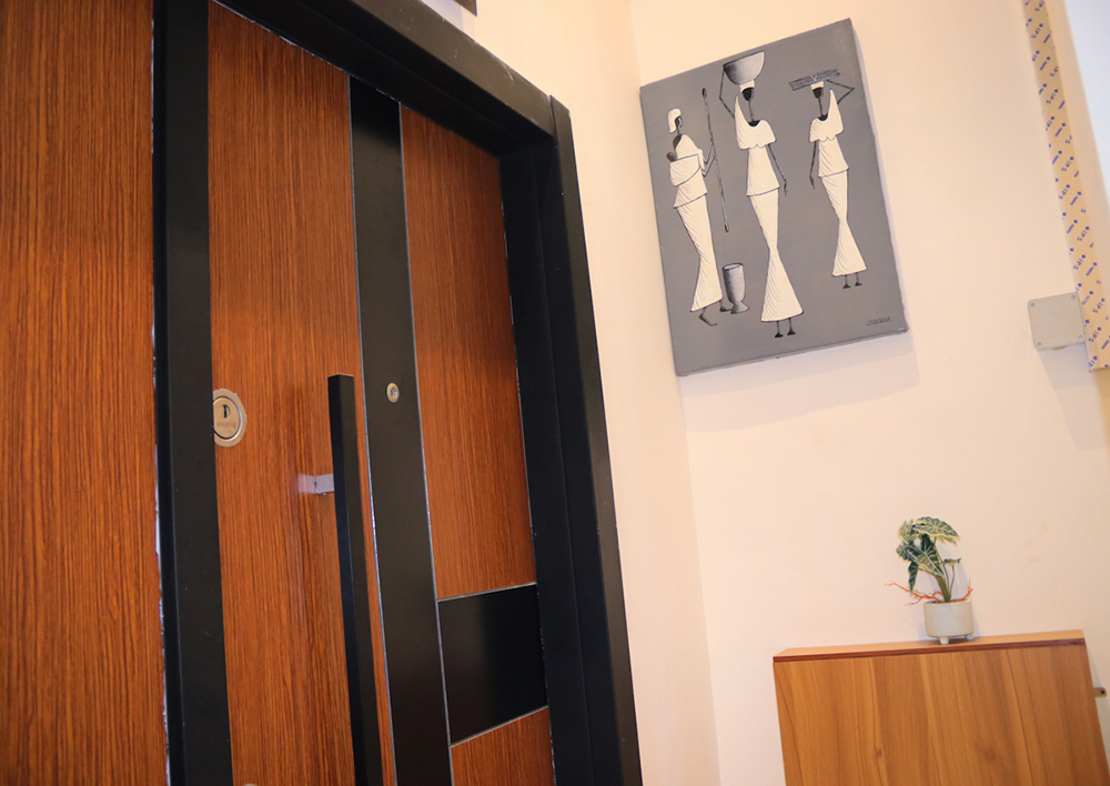 La deuxième entrée indépendante avec une porte double battante en acier s’ouvre sur :